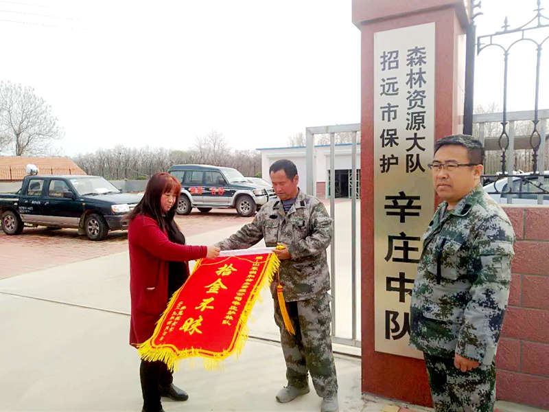 辛庄护林中队,对中队长王洪广主动返还汇错的1000元款项表示感谢。