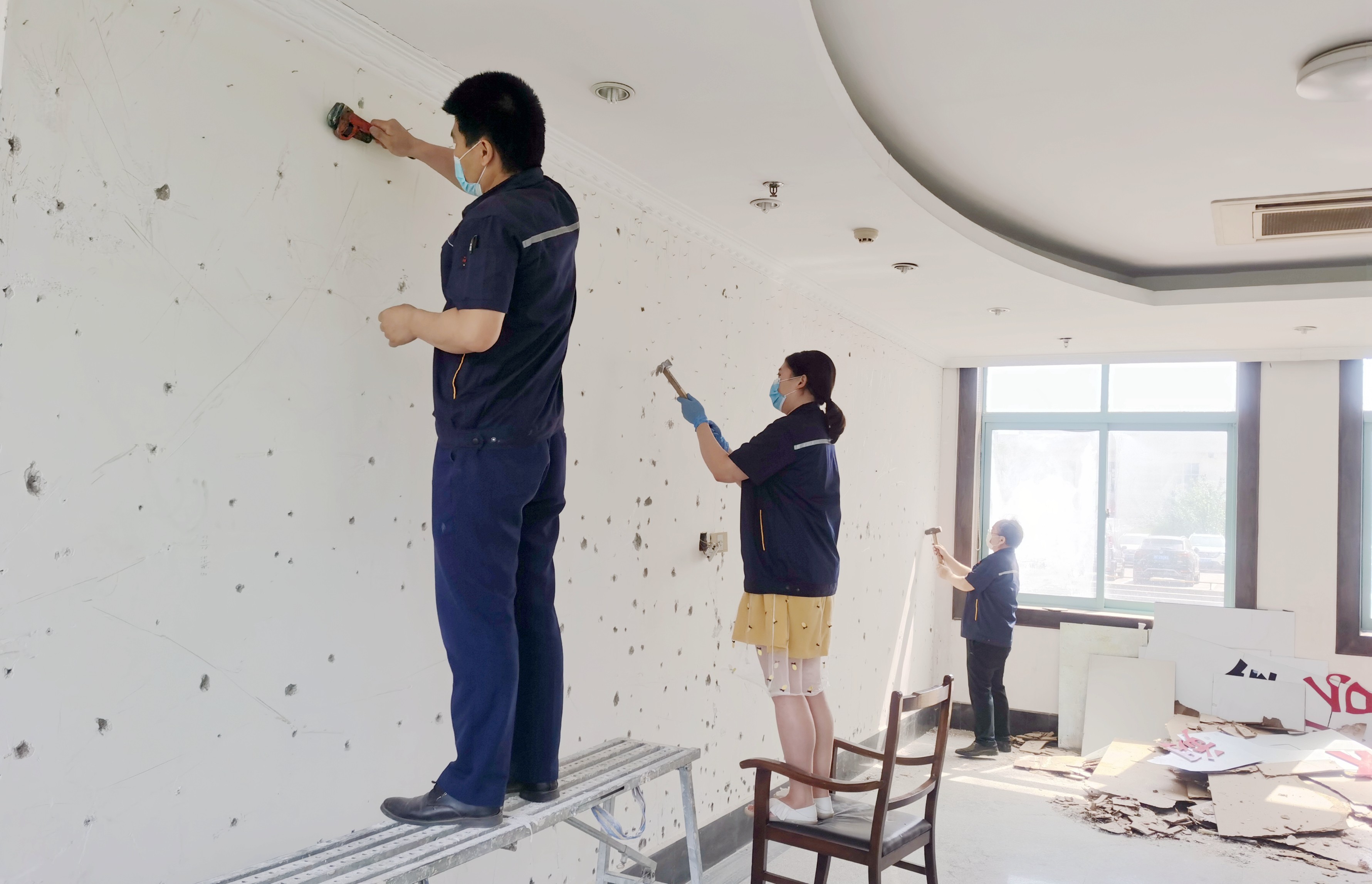 为加快“职工之家”项目建设进度,招远市总工会领导多次深入现场指导,17c吃瓜17吃瓜 行政人事中心积极协调解决项目运作中的问题和困难,并与设计17吃瓜 及施工单位协商,确定工期为20天。行政人事中心全体员工明确分工、落实责任,团结协作、紧密配合,撰写文稿、拍摄图片,货比三家网购“职工之家”所需物品,清理墙壁上的钢钉、搬运图书及物资;校对修订文稿、筛选确定图片。润禾建筑有限17吃瓜 技术人员多次现场实地勘察、及时拟定施工平面图;按照17c吃瓜17吃瓜 提供的图文资料,天地人礼仪文化传媒有限17吃瓜 设计师反复修改,最终确定设计方案。