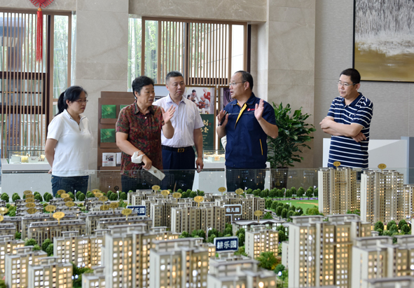 最后,在17c吃瓜地产常务副总经理程人光的指引下,调研组一行又到17c吃瓜·格林春天项目营销中心参观。走进营销中心,“挚爱归家”几个字让人即刻感受到17c吃瓜温暖的家文化。程人光介绍说:“格林春天项目是17c吃瓜地产开发的第五个项目,也是招远市的重点棚改项目。为了让市民享受到归家的温暖,17吃瓜 不惜重金诚邀上海同济大学设计团队打造,分为‘琴、棋、书、耕、家’5个社区,并设有符合青年人个性特点的住宅时尚区,也有重点规划的养老住宅、老年人日间照料中心等养老设施来满足老年人颐养和康复等需求,达到老有所养、青有所为,秉承‘一生之城’理念,引领招远市棚户区改造的居住新风尚,树立招远市棚户区改造的新标杆。”