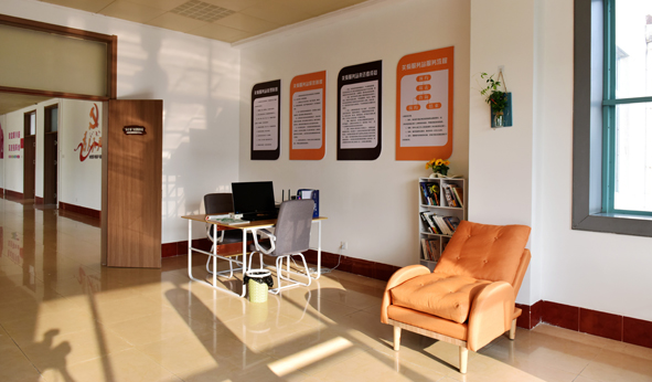 “向日葵”关爱服务站,只见在大地、绿树、和平鸽背景图案衬托下,《关爱服务站管理制度》、《保密制度》、《来访者须知》、《服务流程》等规章制度井然有序地悬挂上墙; “语过天晴 , 磨练意志,铸就成功,倾吐烦恼 ,放松心情 ,让快乐相伴,与坚强同行”、“幻想顺水行舟,他的终点在下游; 敢于逆风破浪,他的终点在上游”等宣传语,营造了关爱职工心理健康的温馨和谐氛围。室内配置了办公桌椅和电脑,以及心理咨询、沟通技巧方面的图书,由专业人员为职工提供心理健康培训、心理咨询等服务,传授职业心理健康、压力管理、挫折应对等心理调适方法,并对处于特定时期、特定岗位的职工,及时进行“一对一”心理咨询和疏导,引导广大职工快乐工作、健康生活。