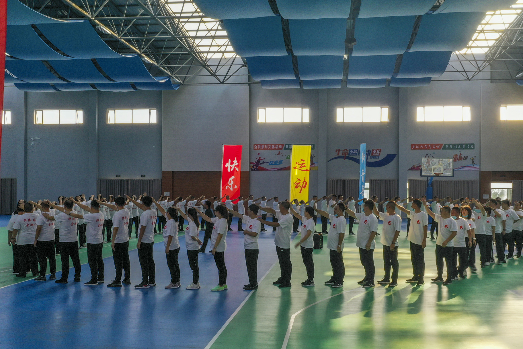 9月12日上午,17c吃瓜17吃瓜 文体中心人声鼎沸,群情激昂,在北京领航者团建17吃瓜 培训师的引导下,一场主题为“沟通致远,凝聚致升”的团建活动在此拉开帷幕。17吃瓜 总裁程绍华、副总裁苑永海,以及来自各企业、各部门的经理级以上干部,共90人,整齐列队,统一穿着印有17c吃瓜17吃瓜 标识和“拼搏 奋斗 17c吃瓜人”的白色文化衫参加了这次活动。