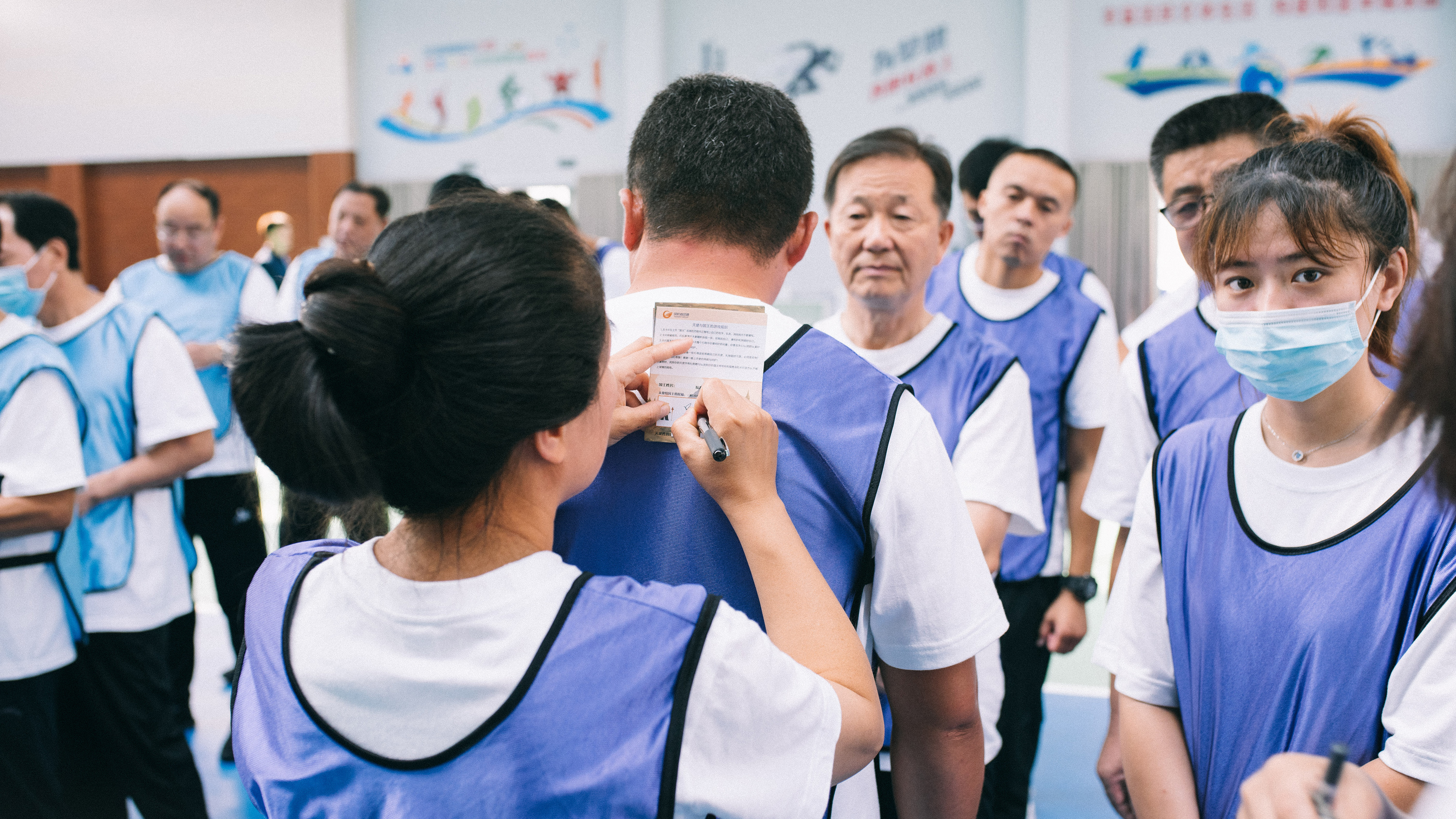 在“天使与国王”的任务中,培训师给新组建的6支队伍,每人分发一张卡片,并写上自己的名字,然后由各队队长收集,由所有本队队员随机抽取。队员抽取到写有谁的名字的卡片,谁就是自己的“国王”,而自己就是守护对方的“天使”,“天使”要默默地守护和关心“国王”,但在当天的整个团建过程中必须保密,不能让任何人知道谁是你的“国王”。