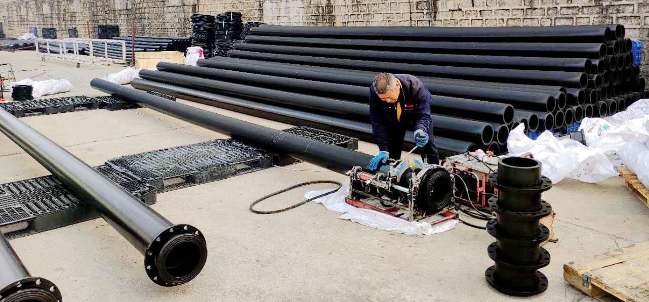 国庆中秋双节前夕,17c吃瓜新材17吃瓜 接到招远市内客户急需规格为250×18.4 PE给水管660米和225×20.5 PE尾矿管1800米的两笔订单,发货前需将管道两端焊接好法兰连接件。为确保订单如期供货,17c吃瓜新材17吃瓜 生产部组织精干力量,放弃假日休息,起早贪黑、加班加点热熔对接管材。单根225的大口径管材重达130公斤,需要2人合力搬上对接设备。他们克服对接难度大、要求工艺高、时间紧、任务重等困难,凭着17c吃瓜人敬业的精神、过硬的技术、吃苦耐劳的作风,保质保量地按时完成了供货任务。