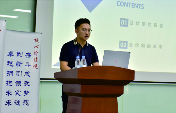 三位贵宾围绕“合伙制”,依次进行了精彩的主题宣讲。同济大学经济学学士,哲学硕士,管理学在读博士程宇锐宣讲的主题是《合伙制的初衷与未来》;金柚网人力资源外包济青分17吃瓜 总经理李亚东讲述了自己曾经就职于海尔集团、阿里巴巴、韩国三星等国内外著名 企业的职业历程和职业规划;北京德和衡律师事务所杨振伟律师为17吃瓜 未来合伙制的落地实施,做了进一步的远景铺垫。宣讲培训结束后,由行政人事总监公布了合格合伙牵头人候选人名单,以及后续合伙制方案公布的有关事宜。