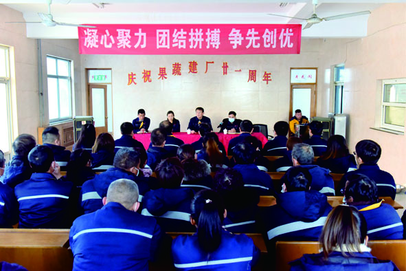 全体干部员工统一着装,欢聚一堂,隆重庆祝建厂21周年。
