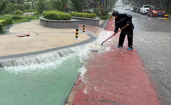 为保障强降雨当日现场可控与信息报送实时精确, 物业部各小区启动全员24小时在岗值守,增强小区应急突发事务的处置应答气力。同时,各小区针对主要危险点实施不中断值班监测,实时对业主停止危险警示和疾速奉告。 ( 文/图 王慧)