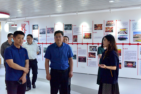 调研指点工会任务。招远市总工会党组布告、常务副主席王利亭、招远市总工会工人文明宫主任谢庆刚、副主席林国卿等伴随。